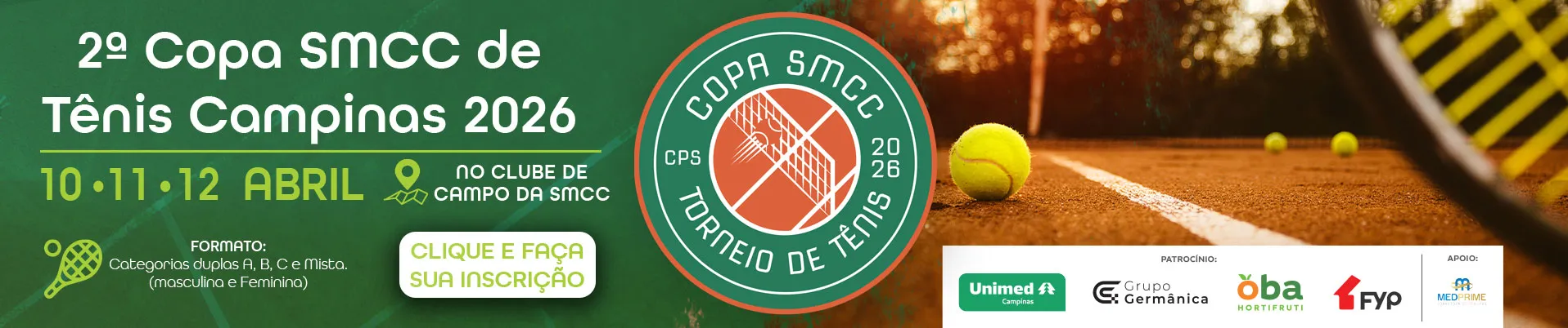 Inscrições abertas para a 2ª Copa SMCC de Tênis Campinas 2026